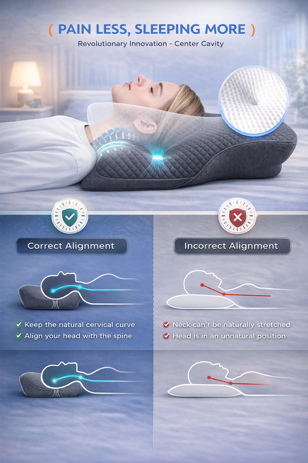 Targeted Neck Support – Gently cradles your neck to promote proper spinal alignment and help relieve stiffness and discomfort.